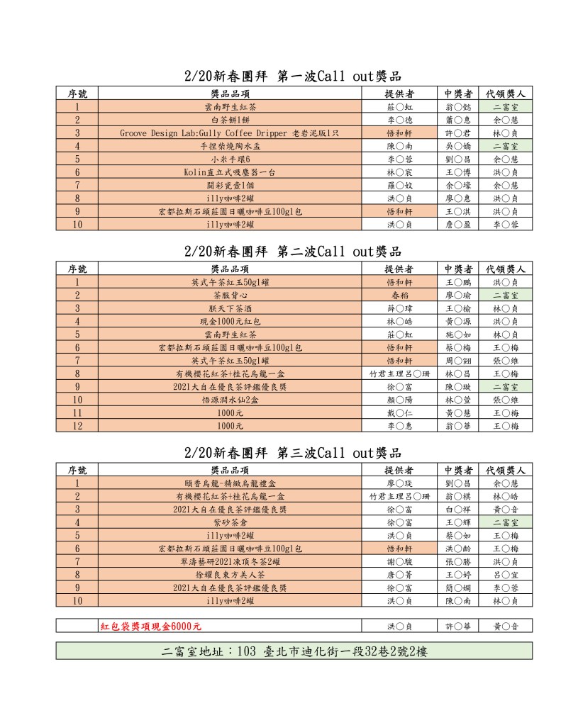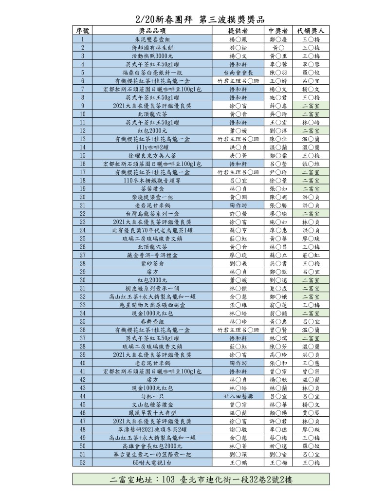 臺北市茶藝促進會2月20日新春團拜圓滿落幕,感謝各位先進、好朋友和會員們熱情的參與和支持、疫情因素,理監事團隊最終決定以直播的方式與大家同樂,不管如何一定要把禮物送到會員的手上!